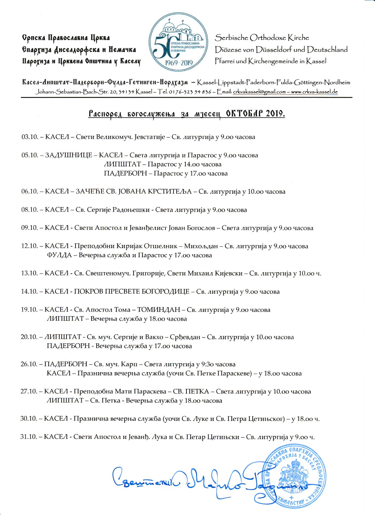 Распоред Богослужења за ВАСКРС 2026.