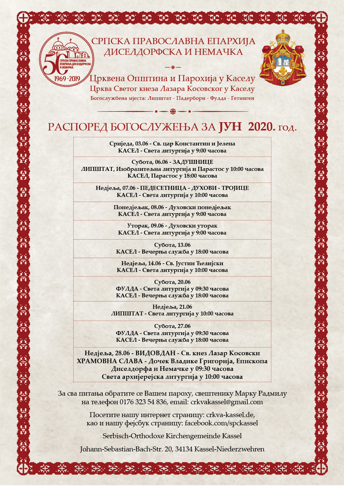 Распоред Богослужења за ВАСКРС 2026.